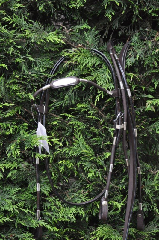 OverzichtWesternhoofdstel met zilverbeslag, rondgestikte delen met 187 cm teugel.
